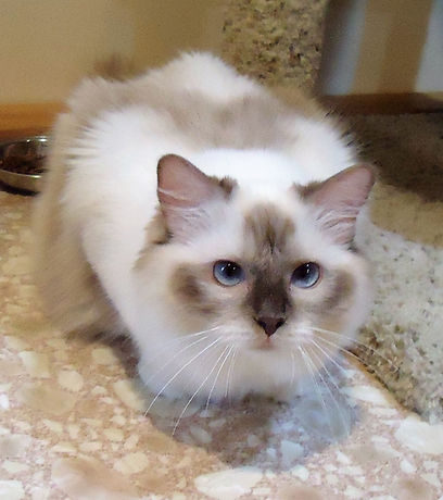 Willow is a blue mitted out of Anya, by Bo. She is very sweet and loves to chat with her people. One touch and she's purring. Her stunning blue eyes and soft rabbit-like fur make her an ideal Queen.
